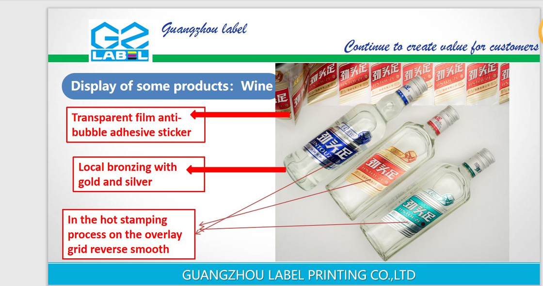 Guangzhou label printing Co., Ltd is specialized in research, development and supplying in sticker, label printing, bar code label, printing labels, self adhesive stickers, single label, bottle labels manufacturer.
